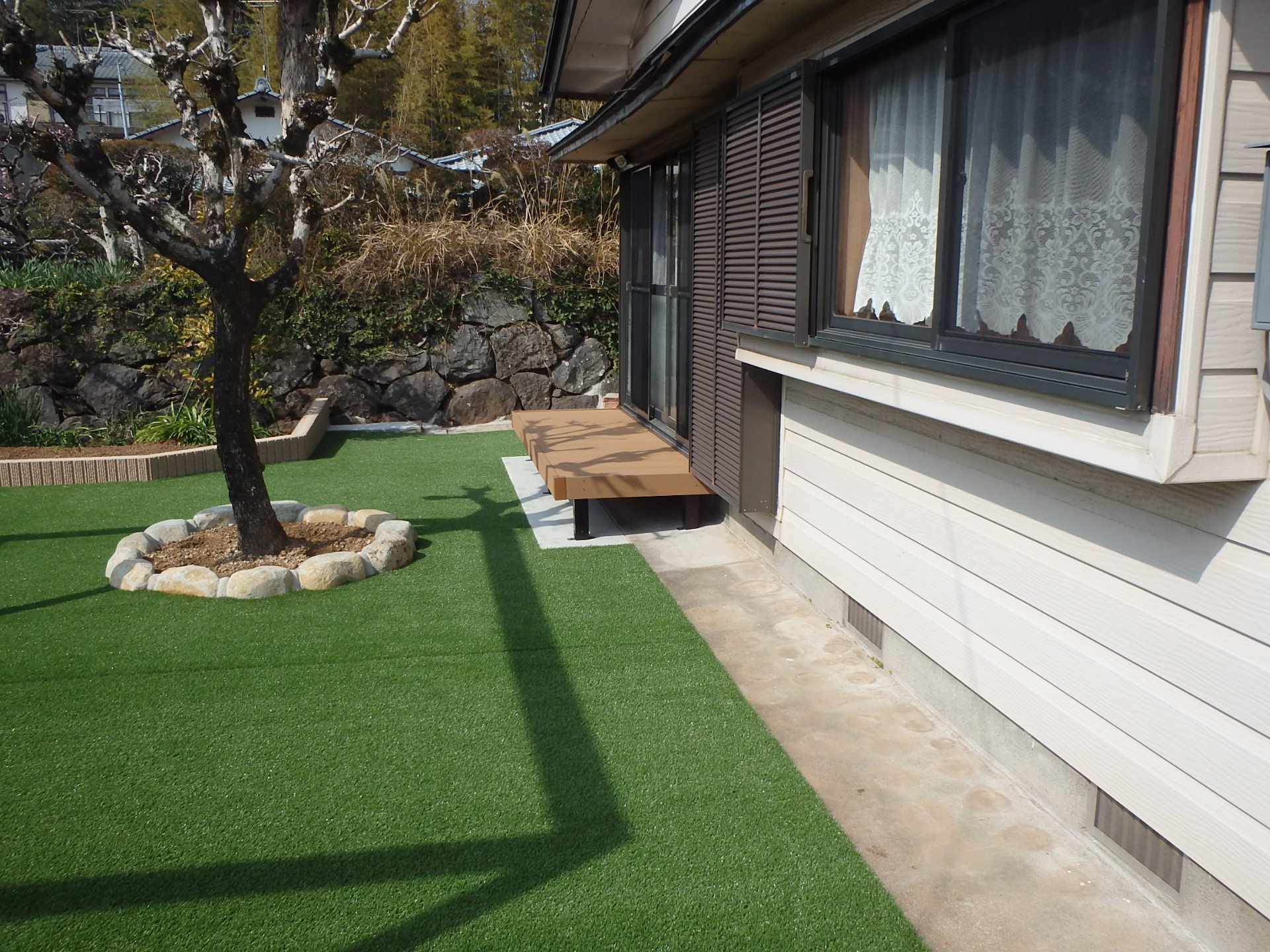 ガーデンの施工例: 67 やっぱり人工芝はきれいです、これで毎年来る雑草を取る重労働ともおさらばです。
