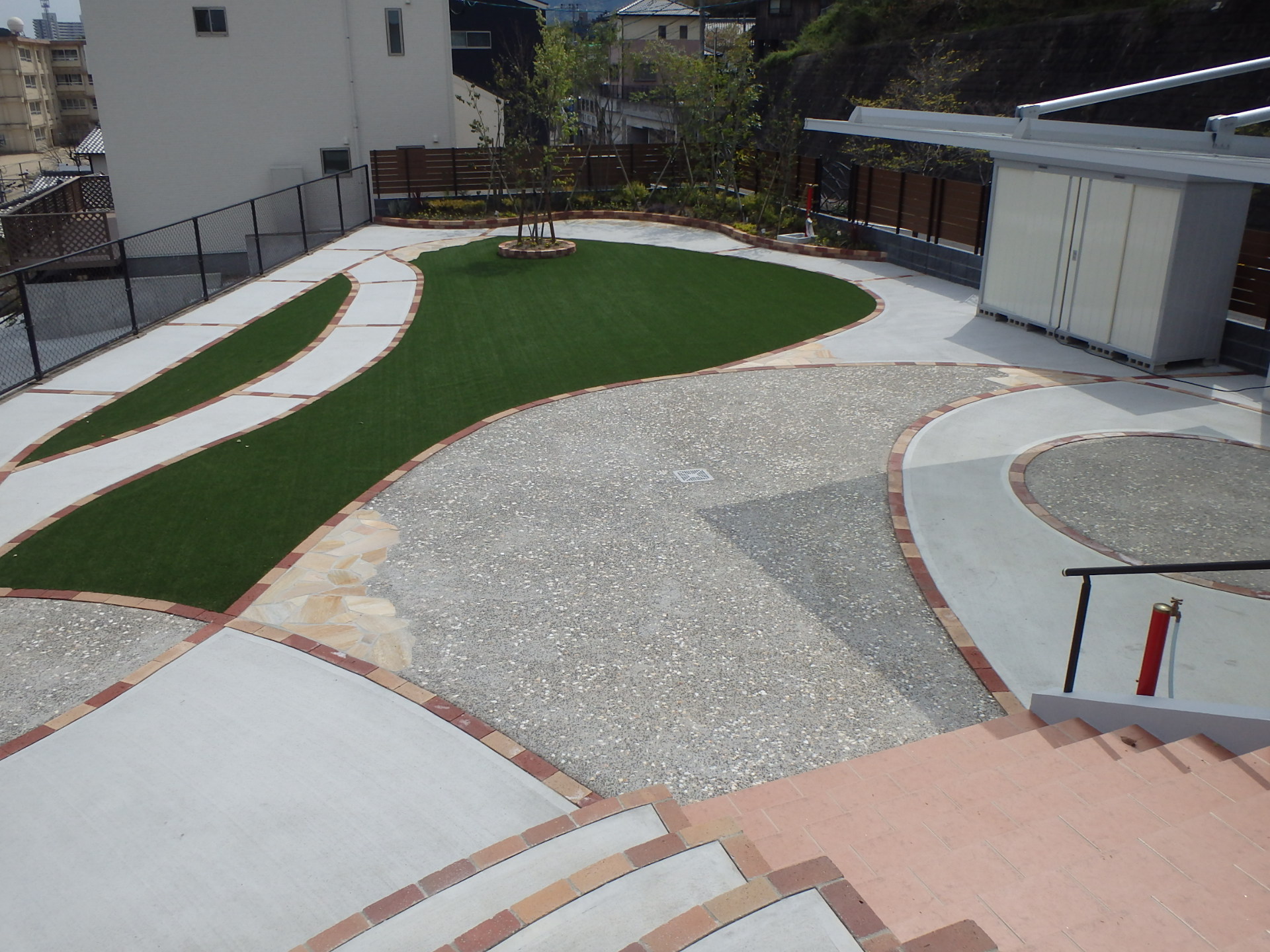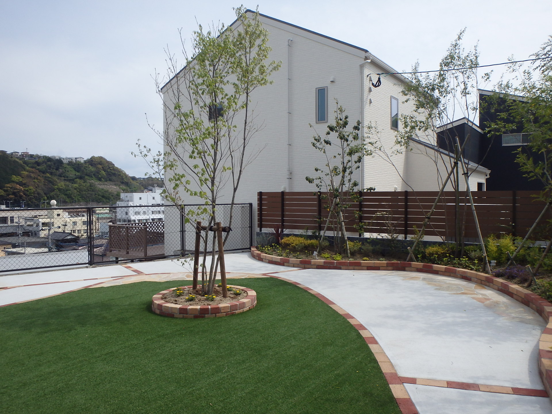 人工芝とのハイブリットがお洒落です。