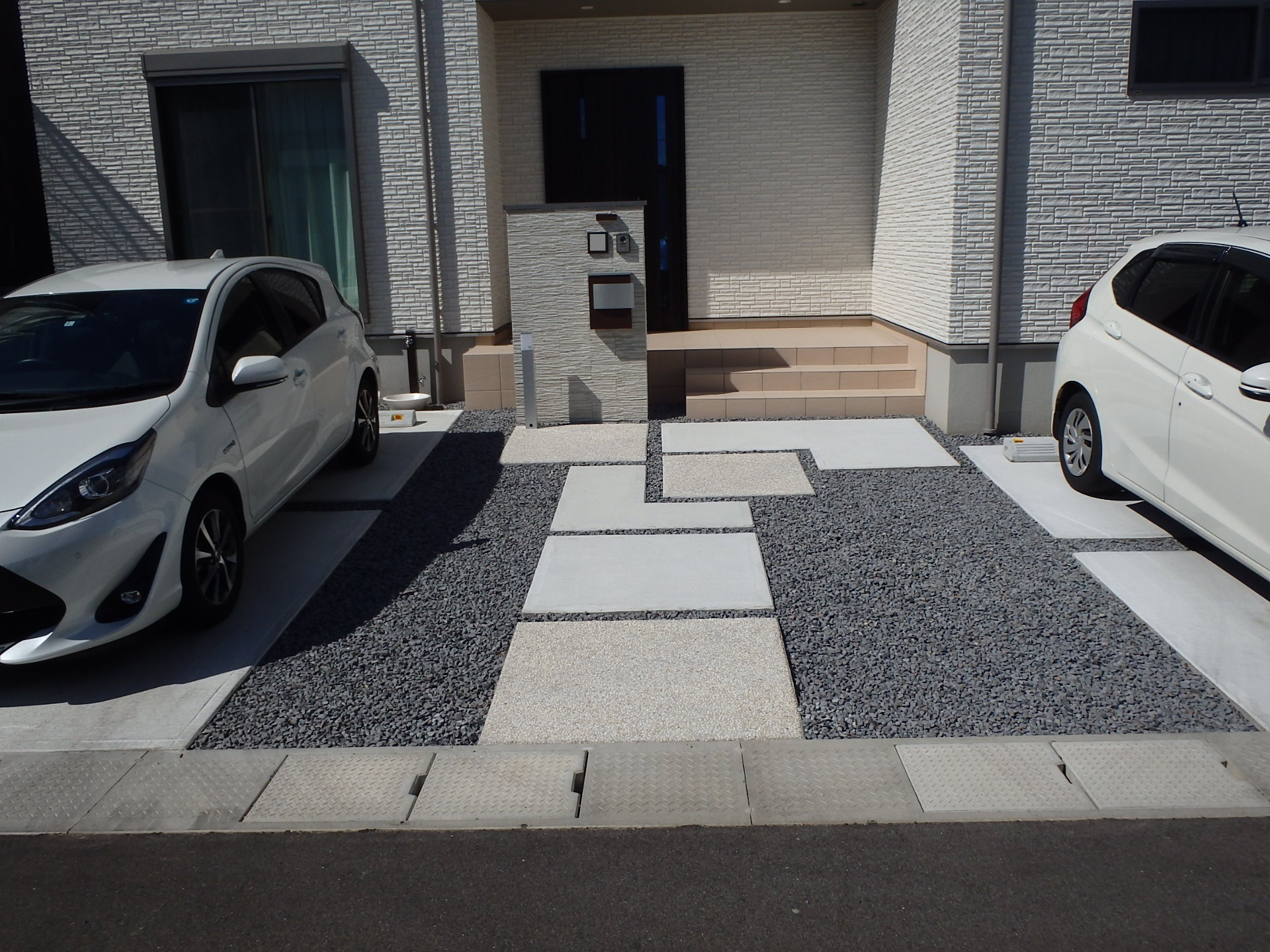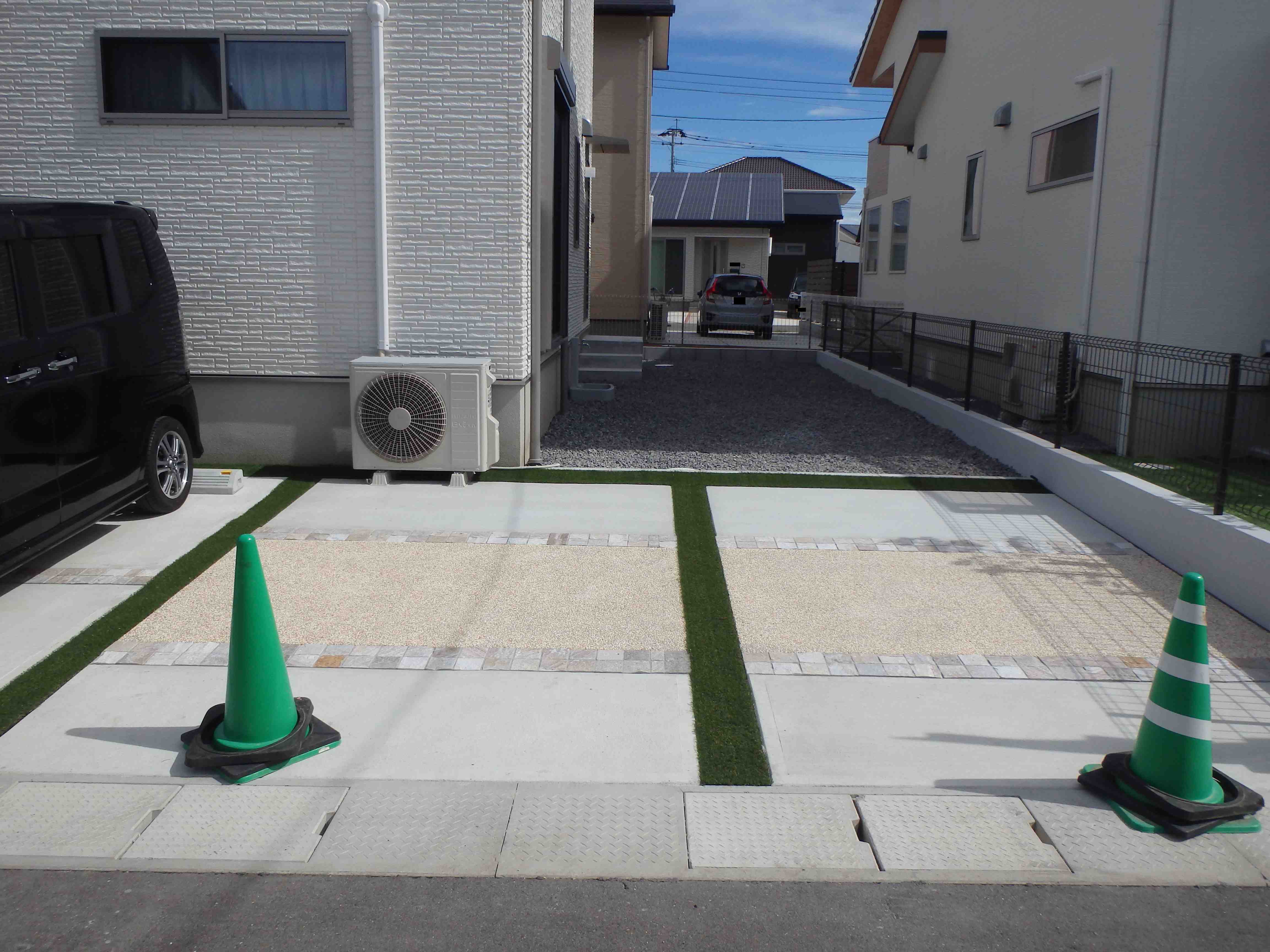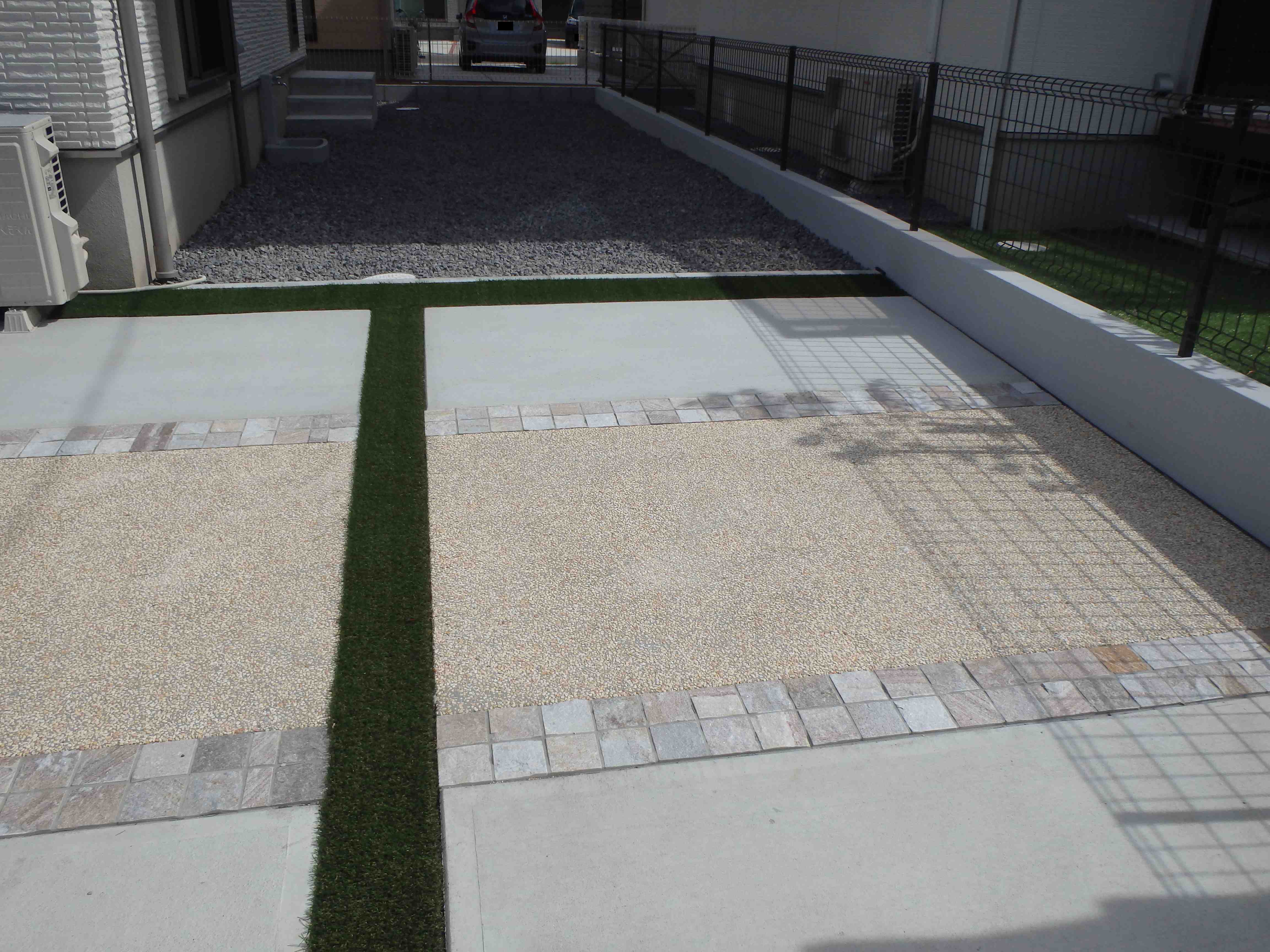 202 砂利を人工芝に変わりました、白と緑の綺麗なバランスでとてもおしゃれです。