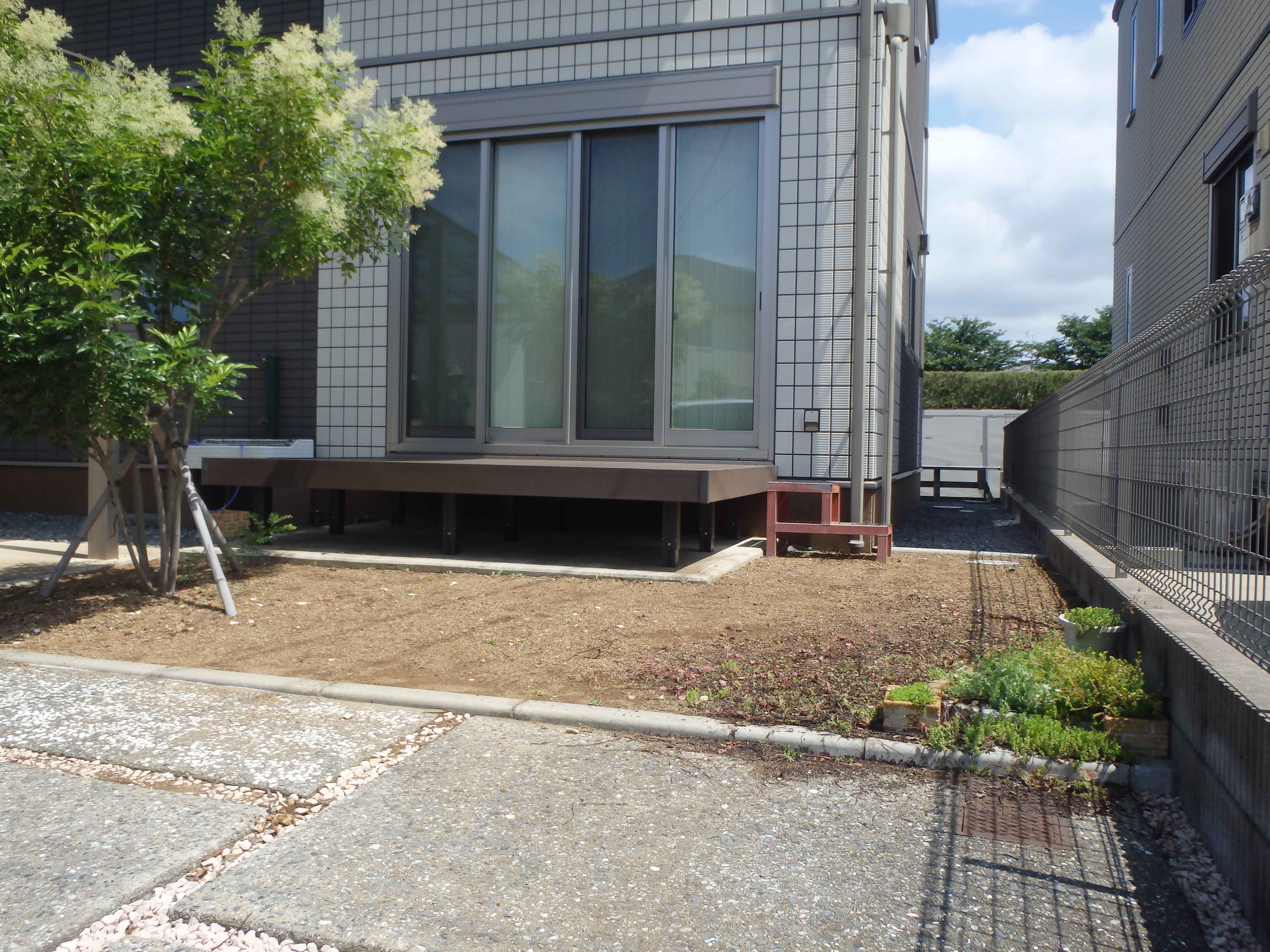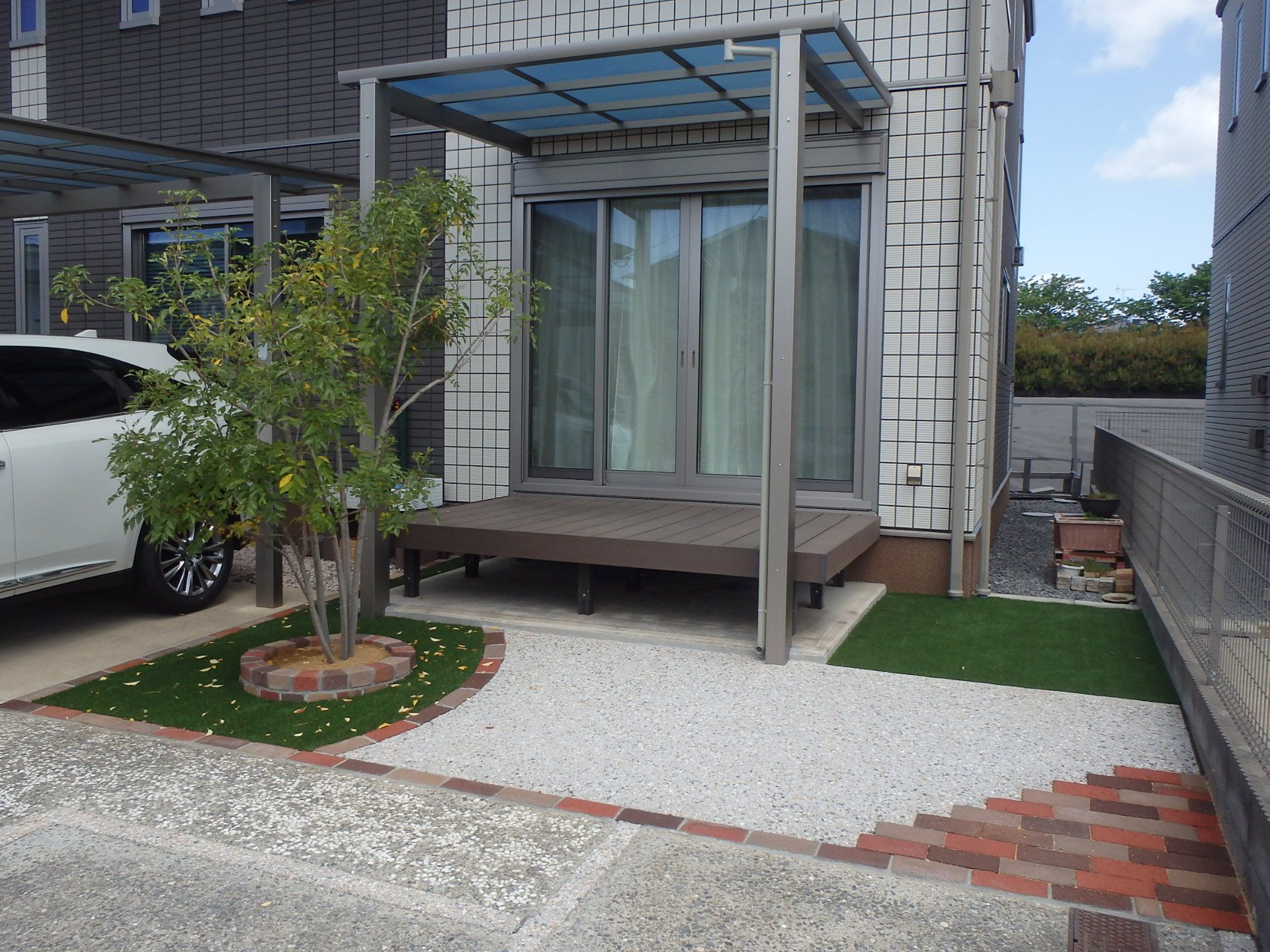 テラス・デッキの施工例: 116 シンボルツリーのある駐車場、全体的にやわらかくなりました。