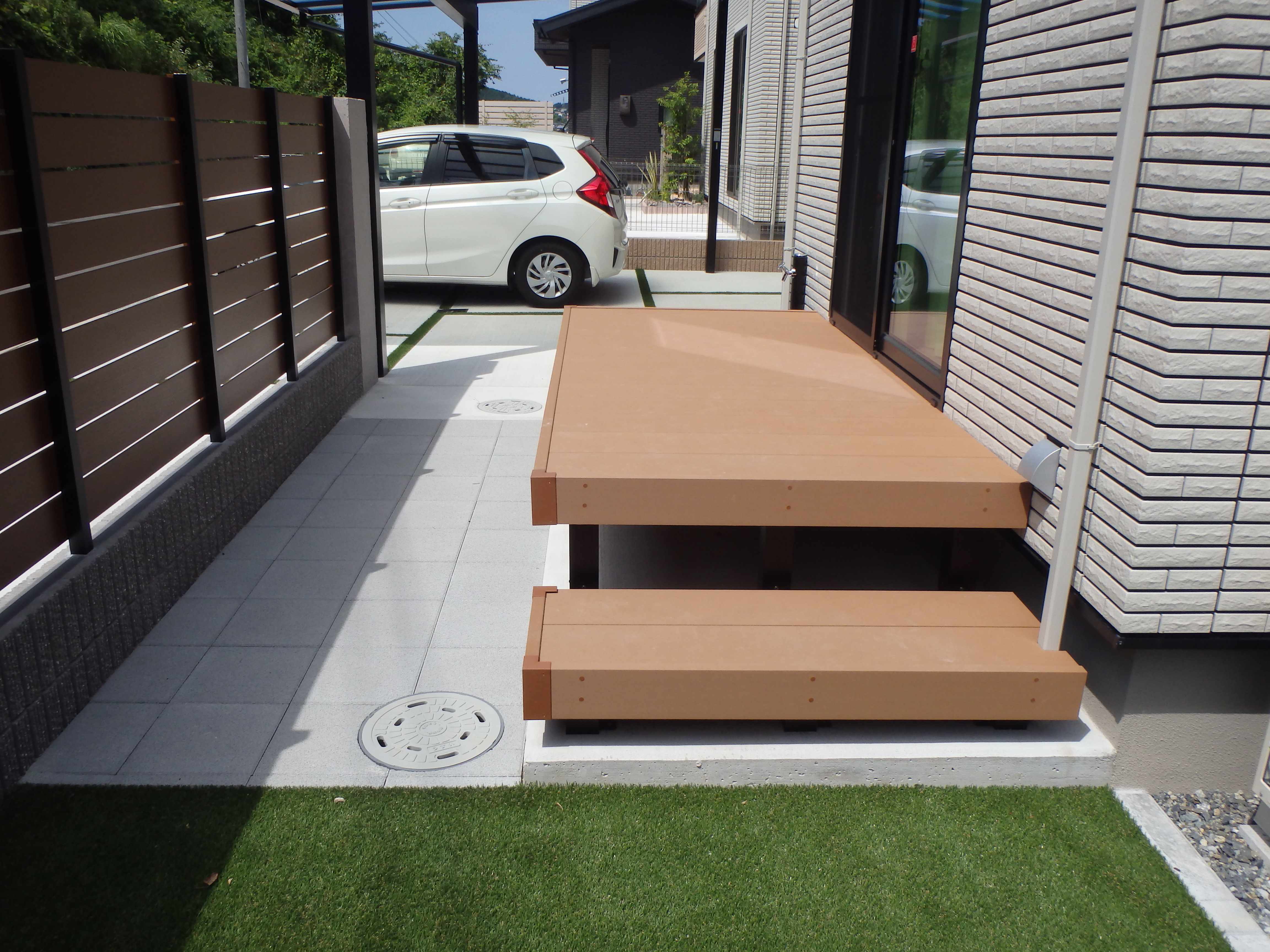 新築外構の施工例: 136 カーポートと駐車スペース、ゆとりのある空間に仕上げました。