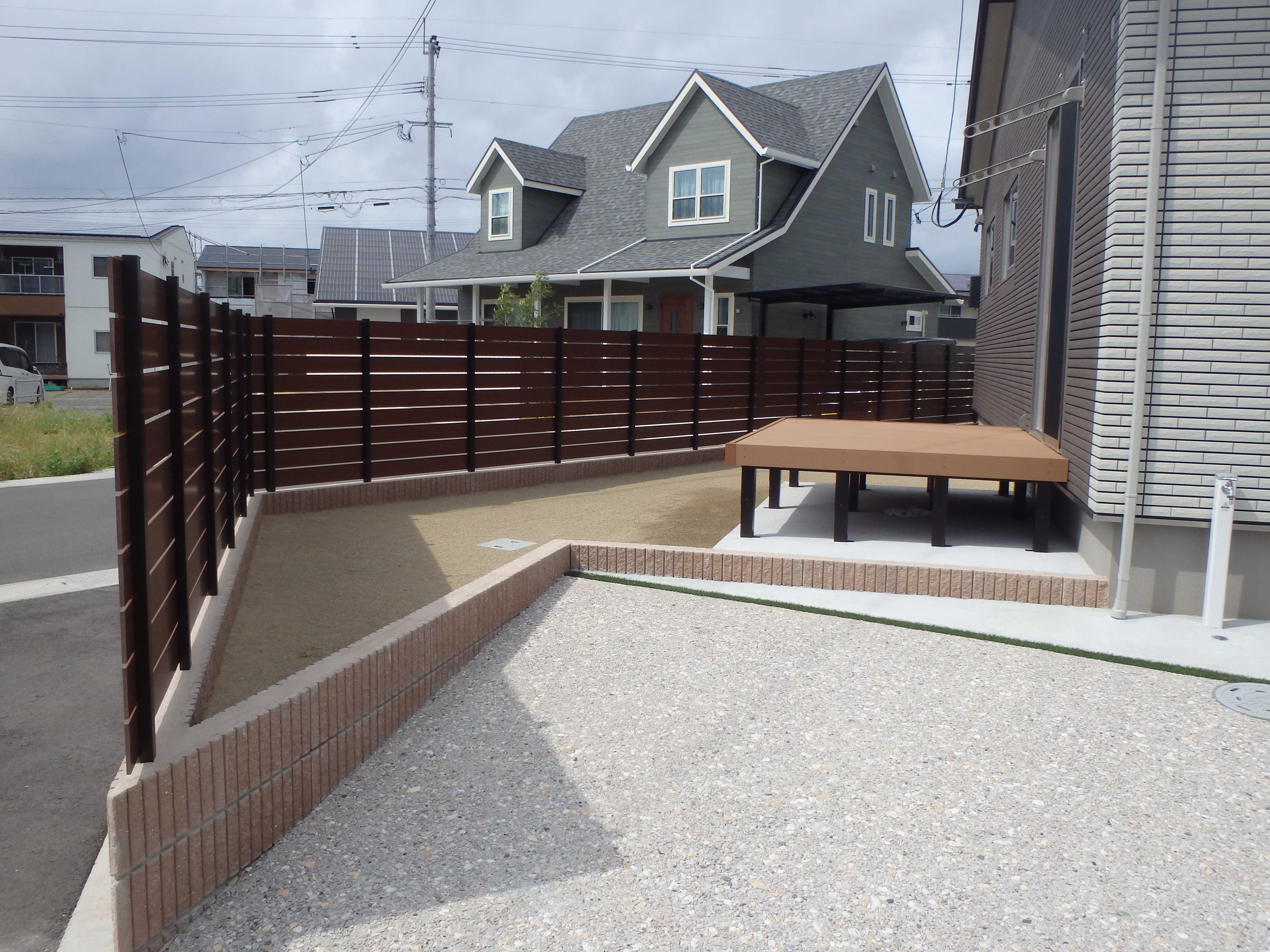 新築外構の施工例: 138 外からの視界を遮るウッドフェンス。
