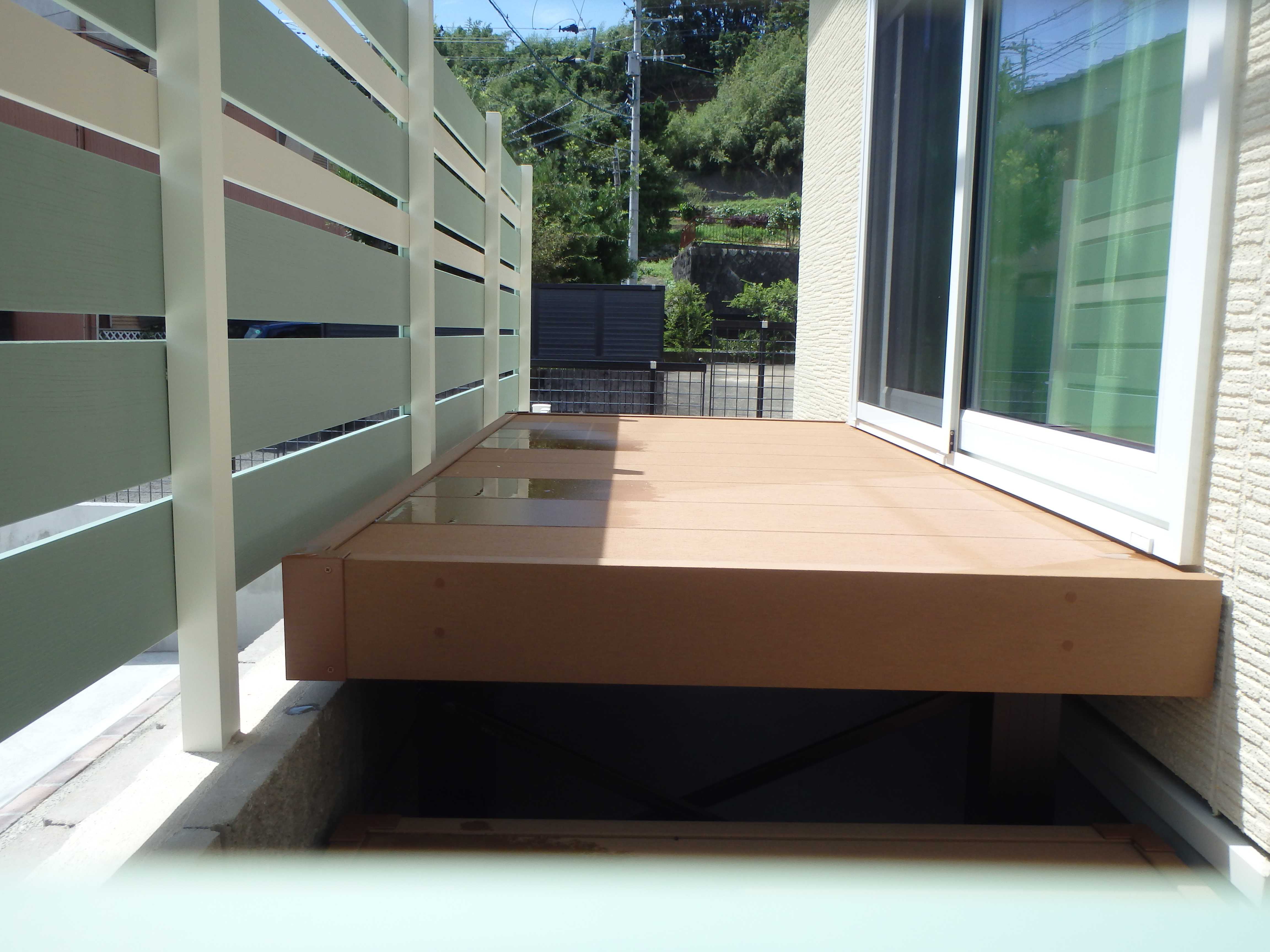 新築外構の施工例: 139長崎市 ゆとりある車庫スペース、子供の車が一台増えても大丈夫。