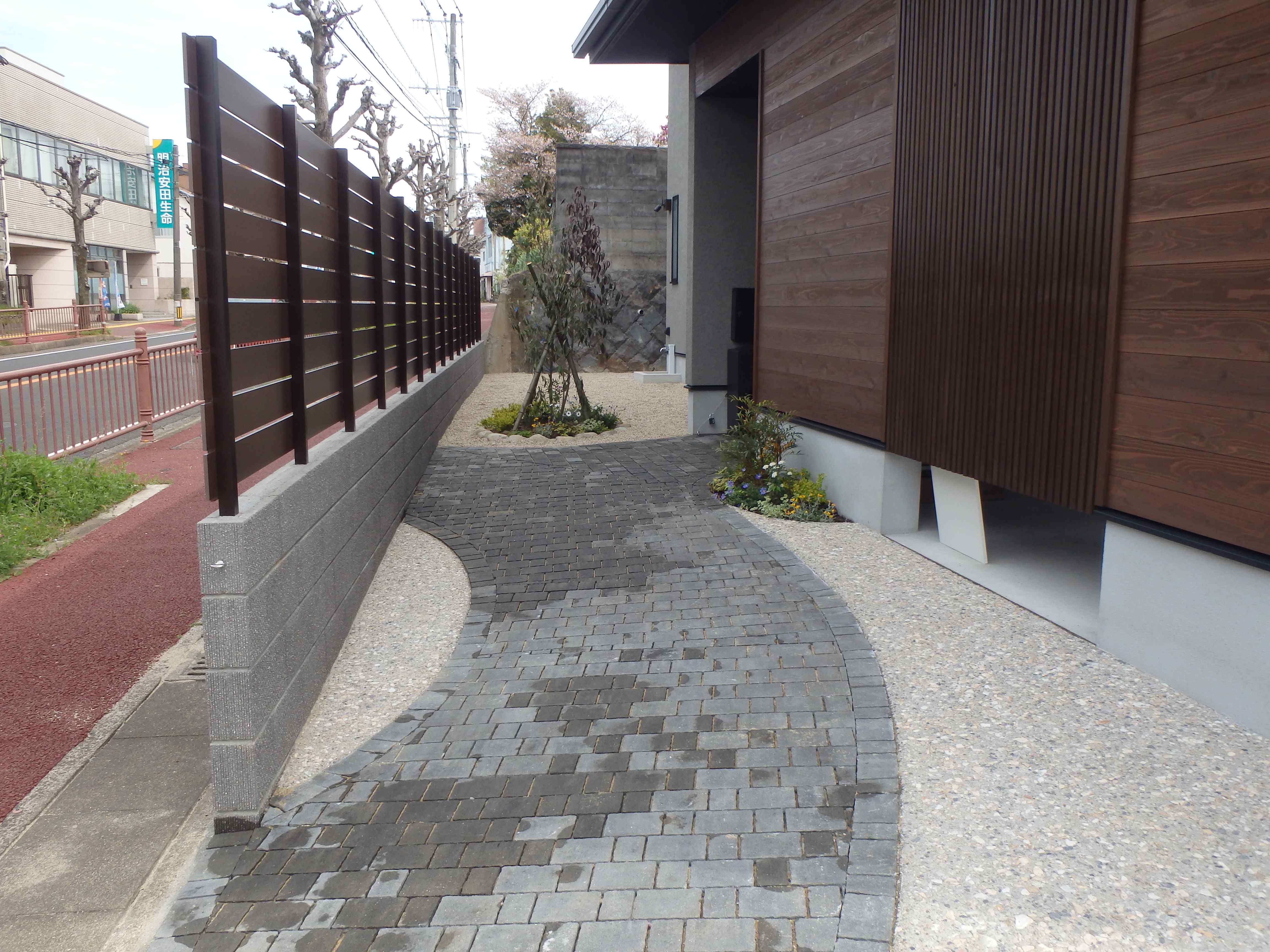 183 広い駐車スペースとお庭の人工芝、玄関へのアプローチもとても綺麗でおしゃれです。