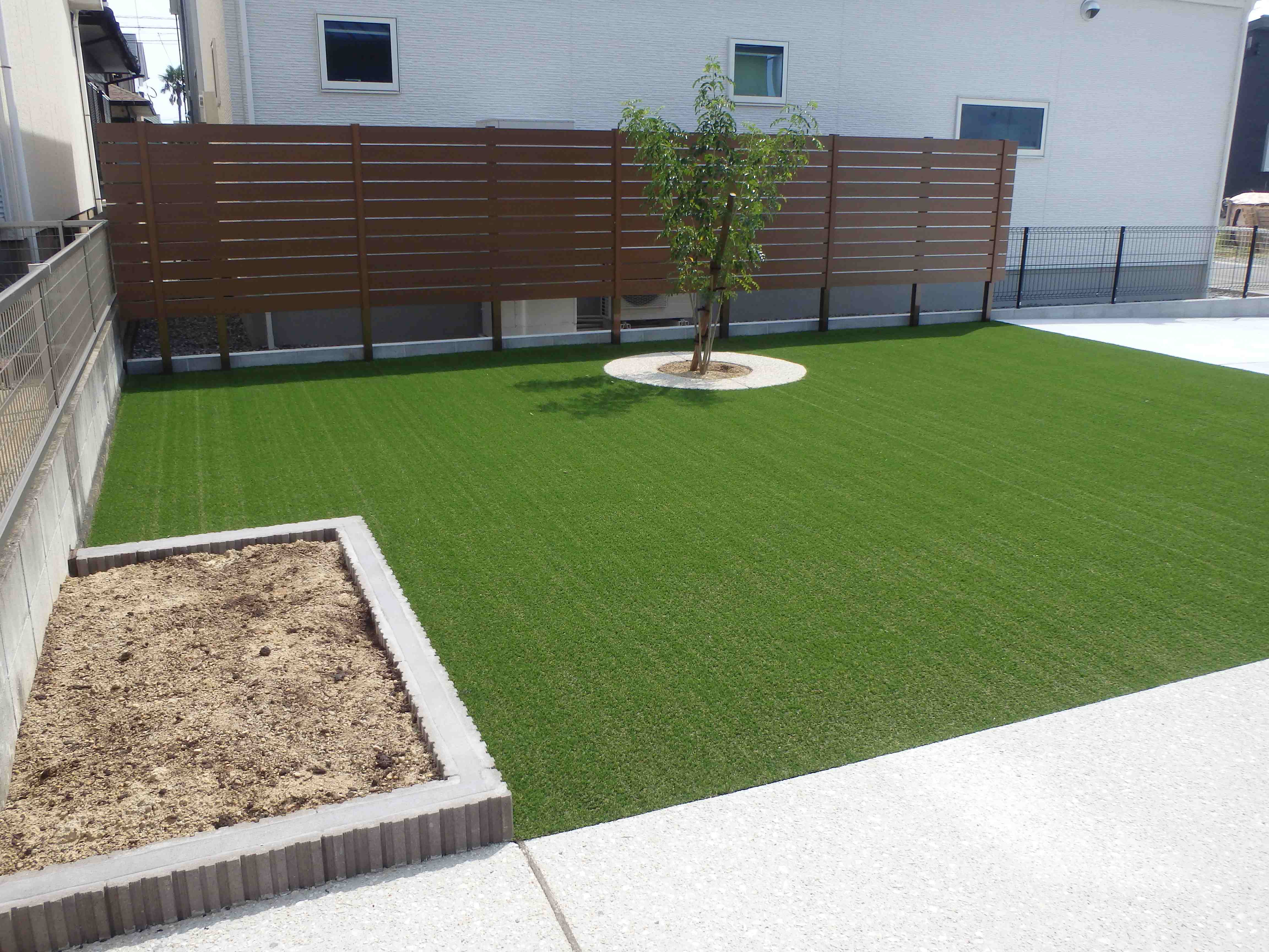 新築外構の施工例: 216 広いスペースがオシャレなお庭になりました。