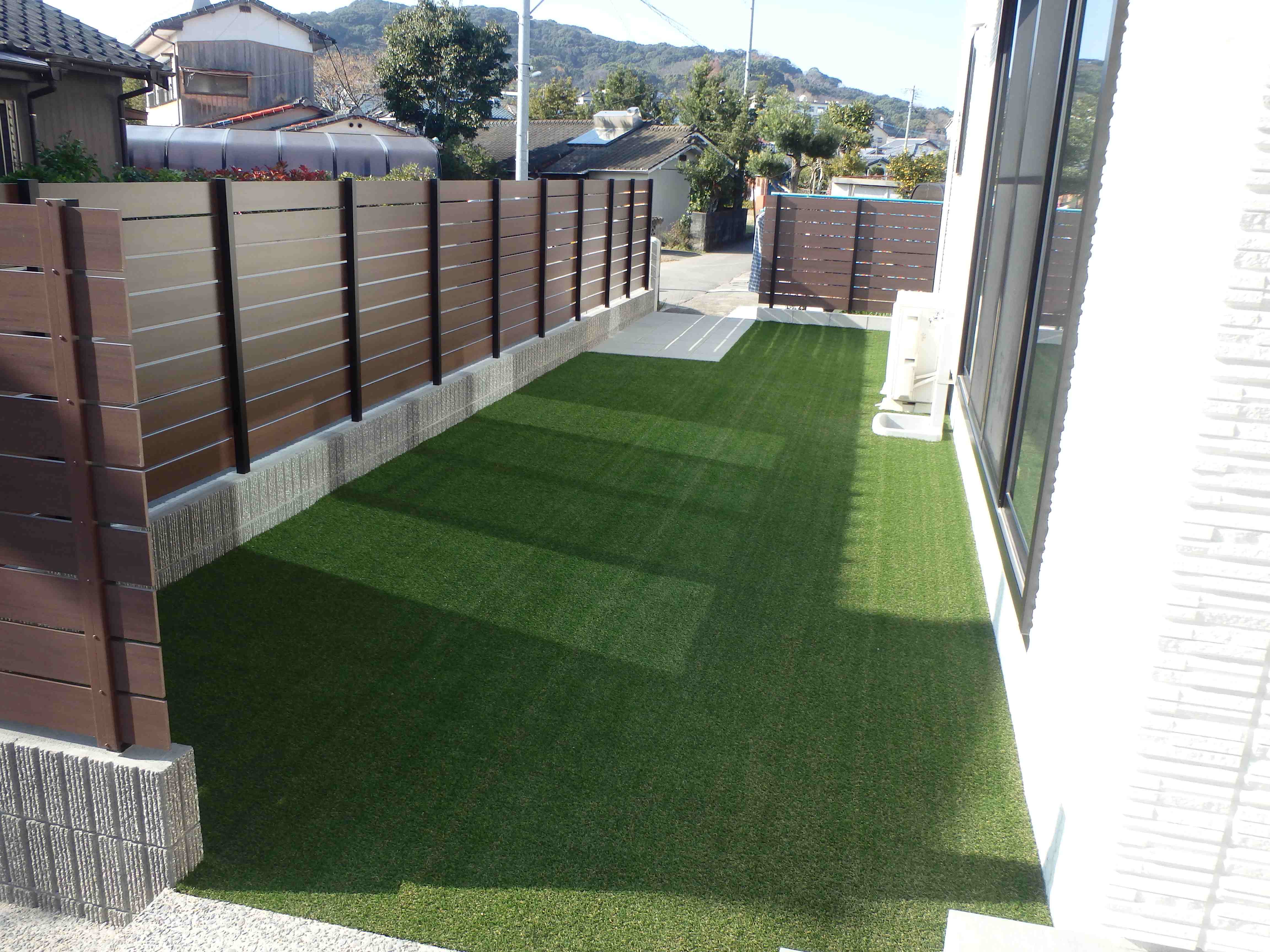 新築外構の施工例: 250 和風の庭から洋風になりました。どちらも魅力がありますが、広くスッキリした広いお庭になりました。