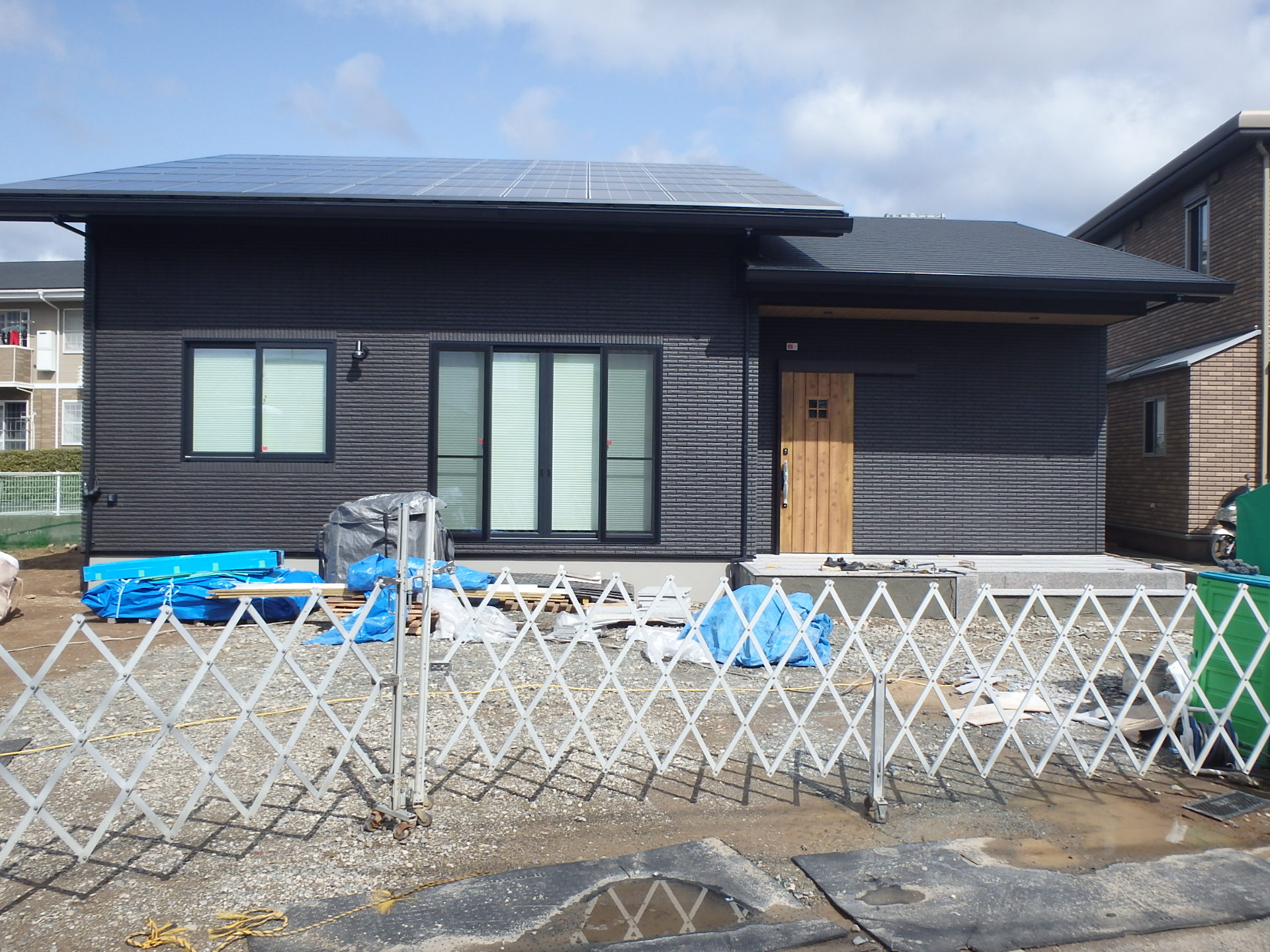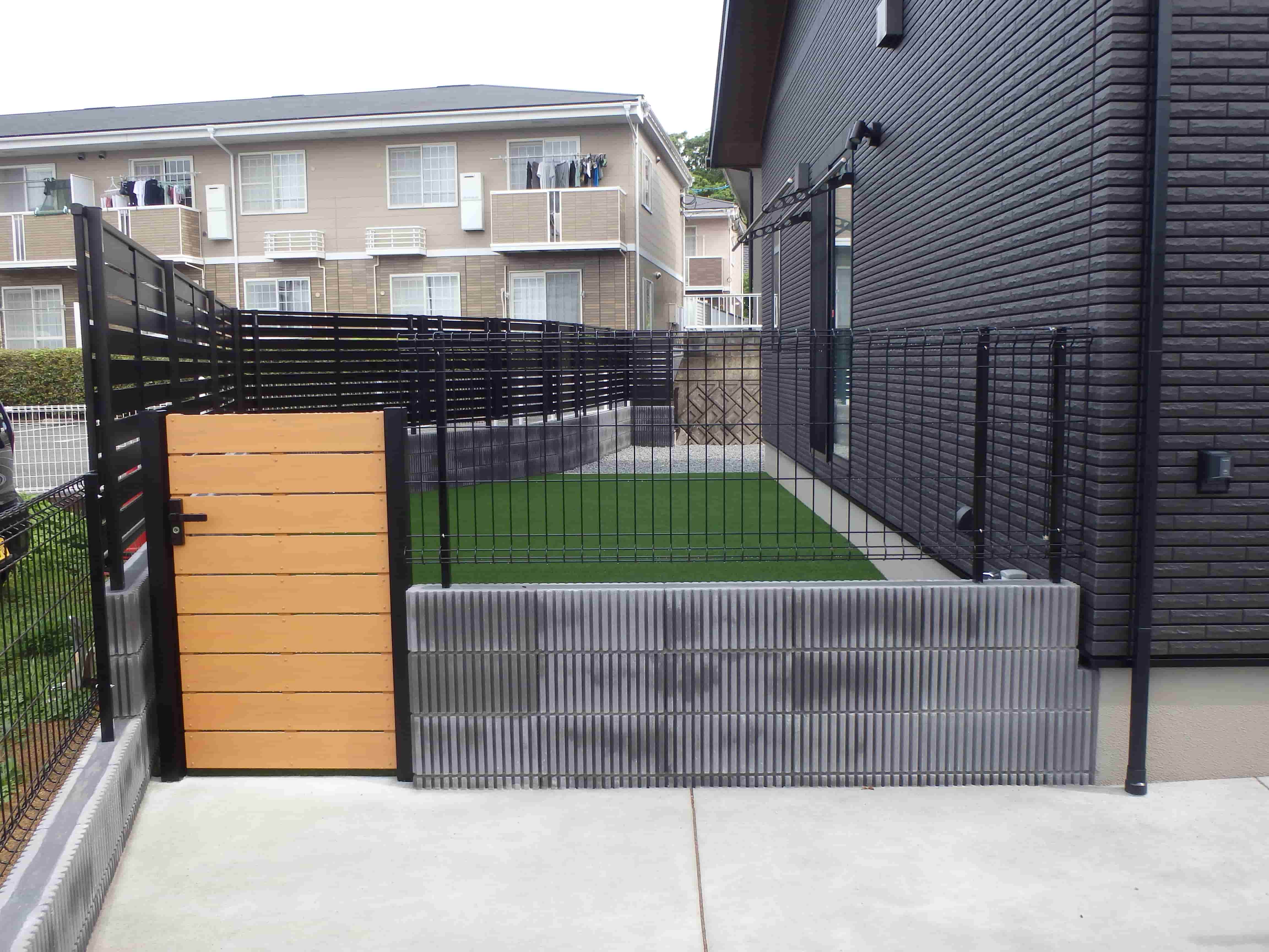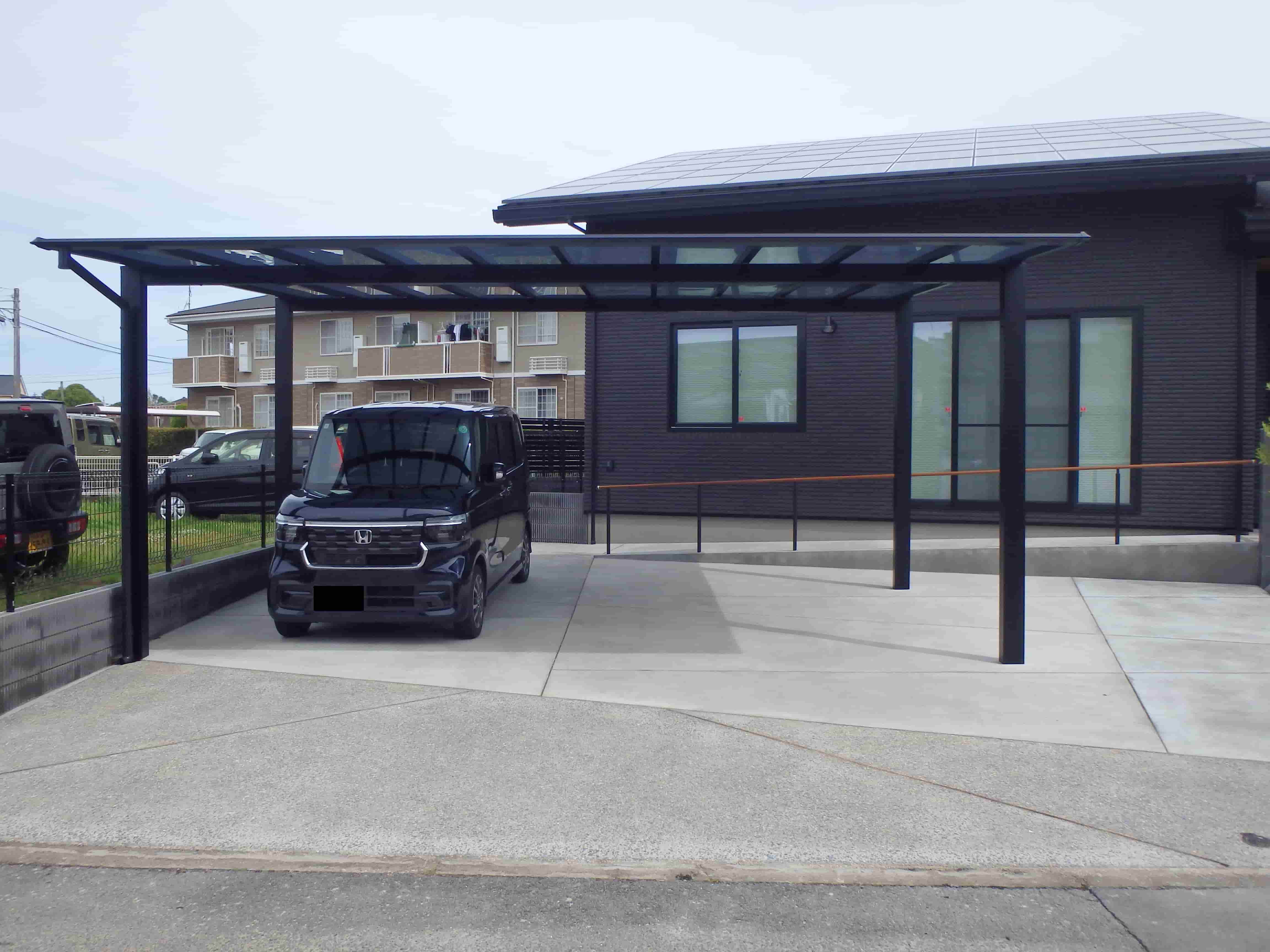 266 とてもお洒落な外構工事完了です、建物とカーポートもよく似合ってます。