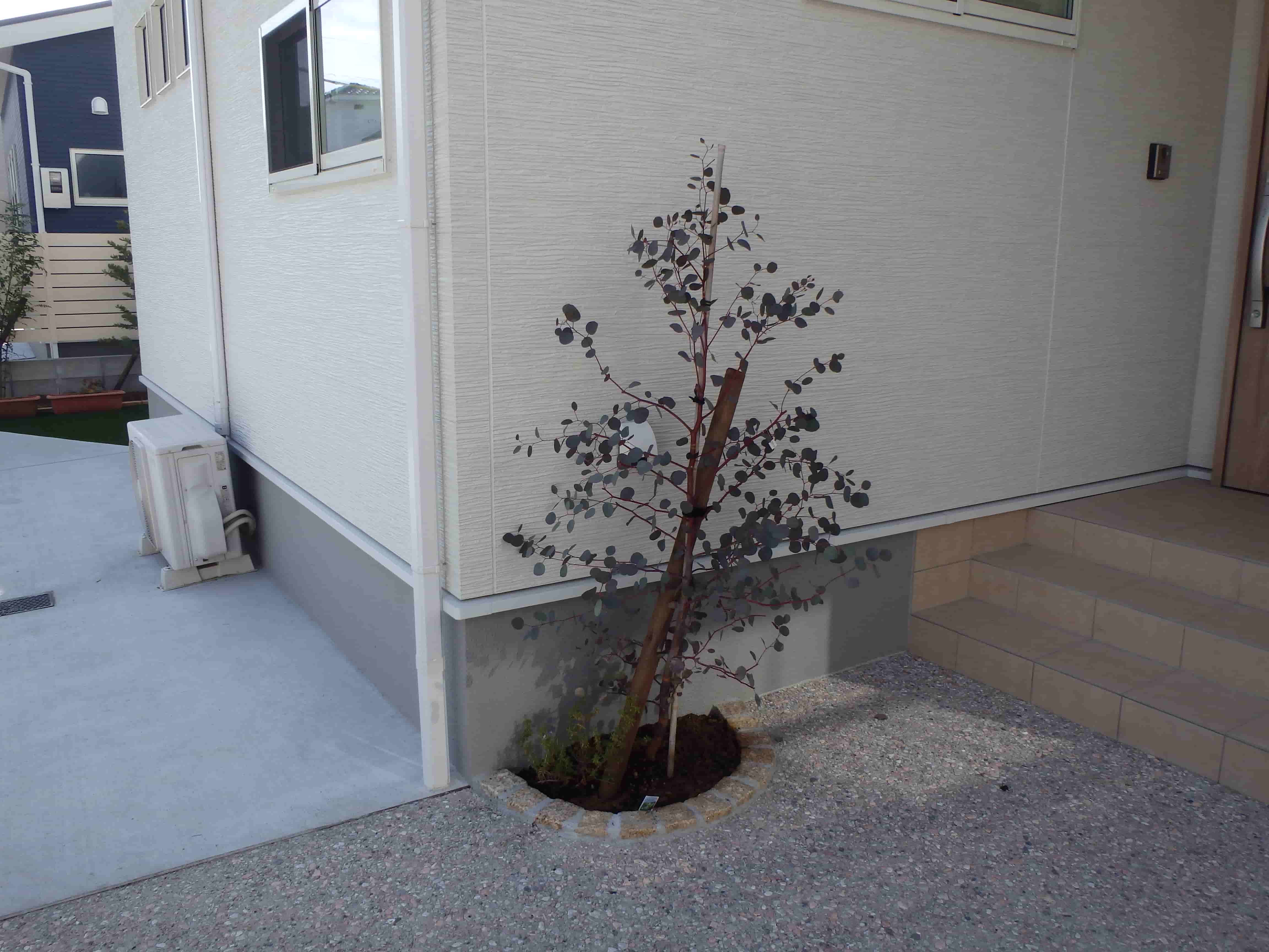 新築外構の施工例: 280 人工芝と花壇の組み合わせいいですね、ワンポイントで緑を入れるのもオシャレです。