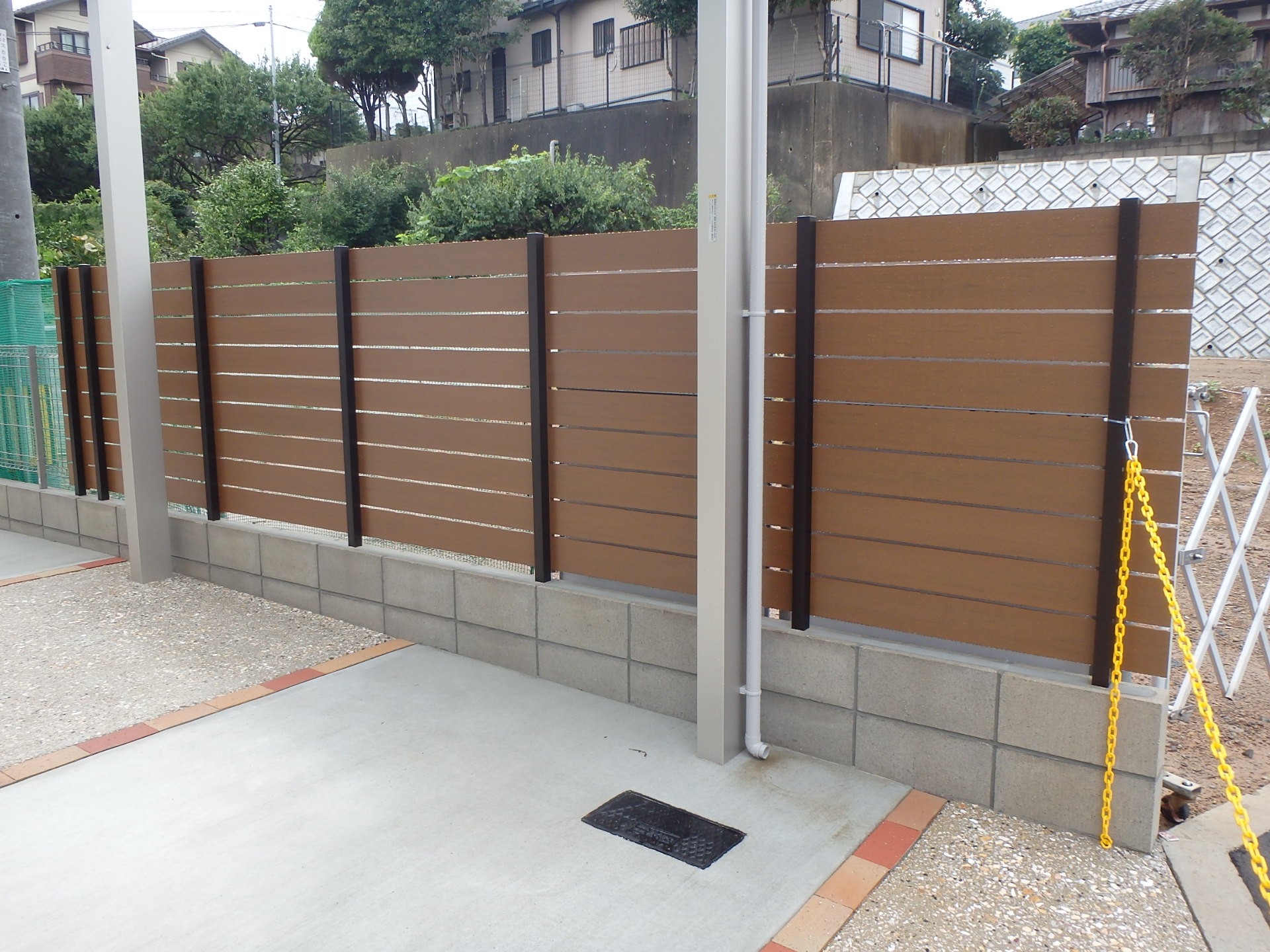 門扉・フェンスの施工例: 73 ウッド調のフェンスで柔らかい雰囲気にしました。
