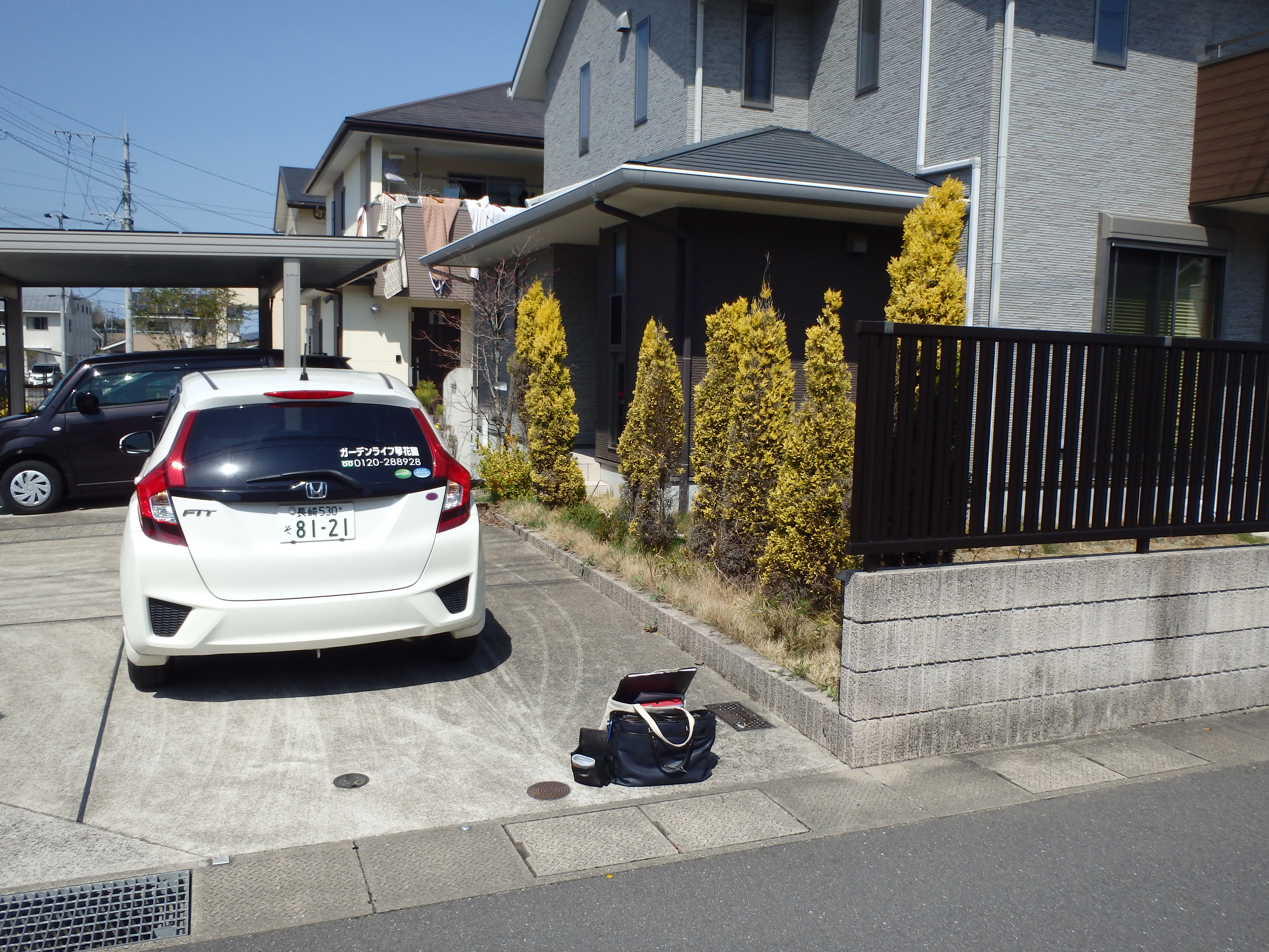 門扉・フェンスの施工例: 98 広々とした駐車スペースを確保しました。