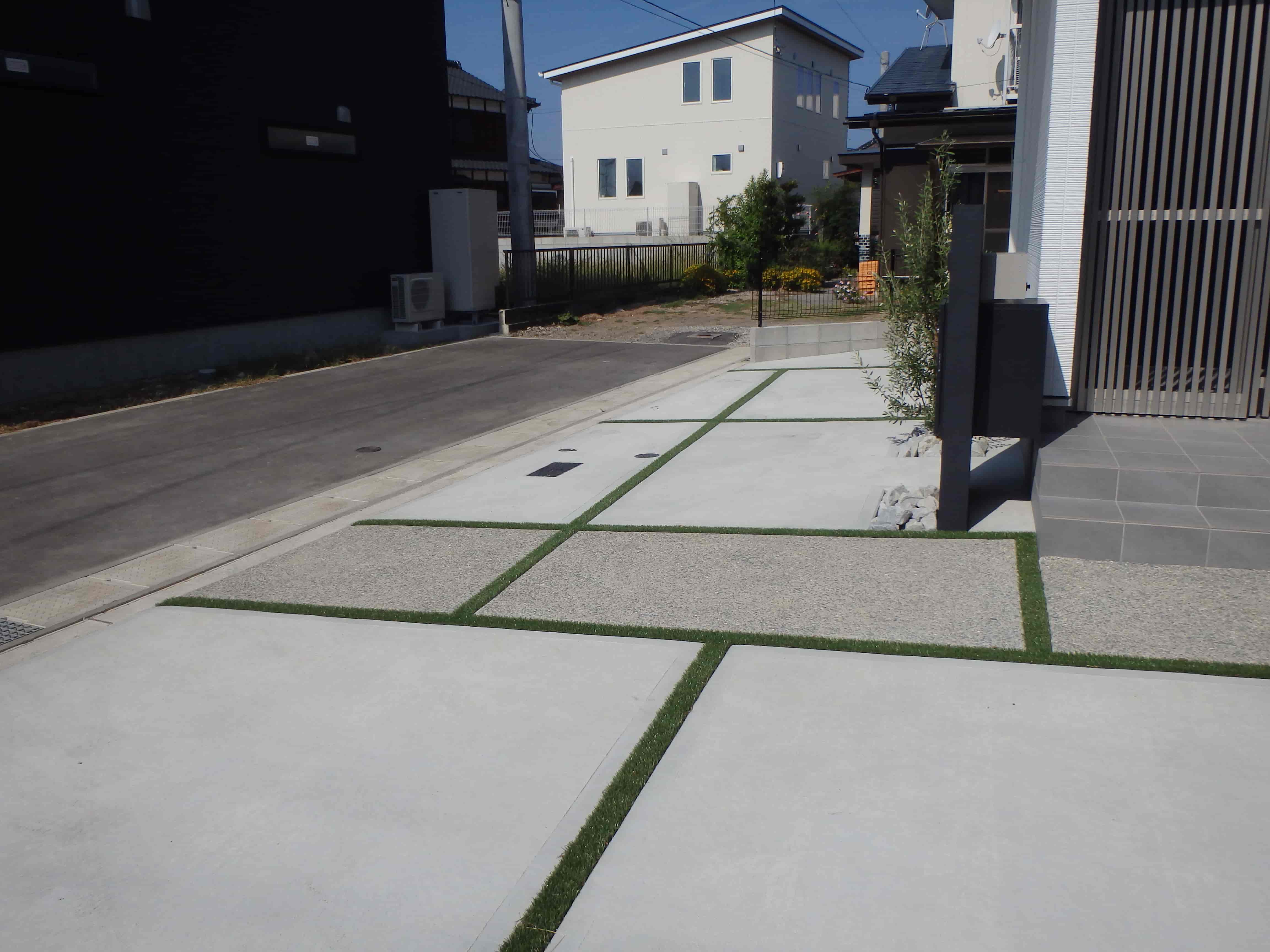 新築外構の施工例: 272 建物によくあったお洒落な外構になりました。