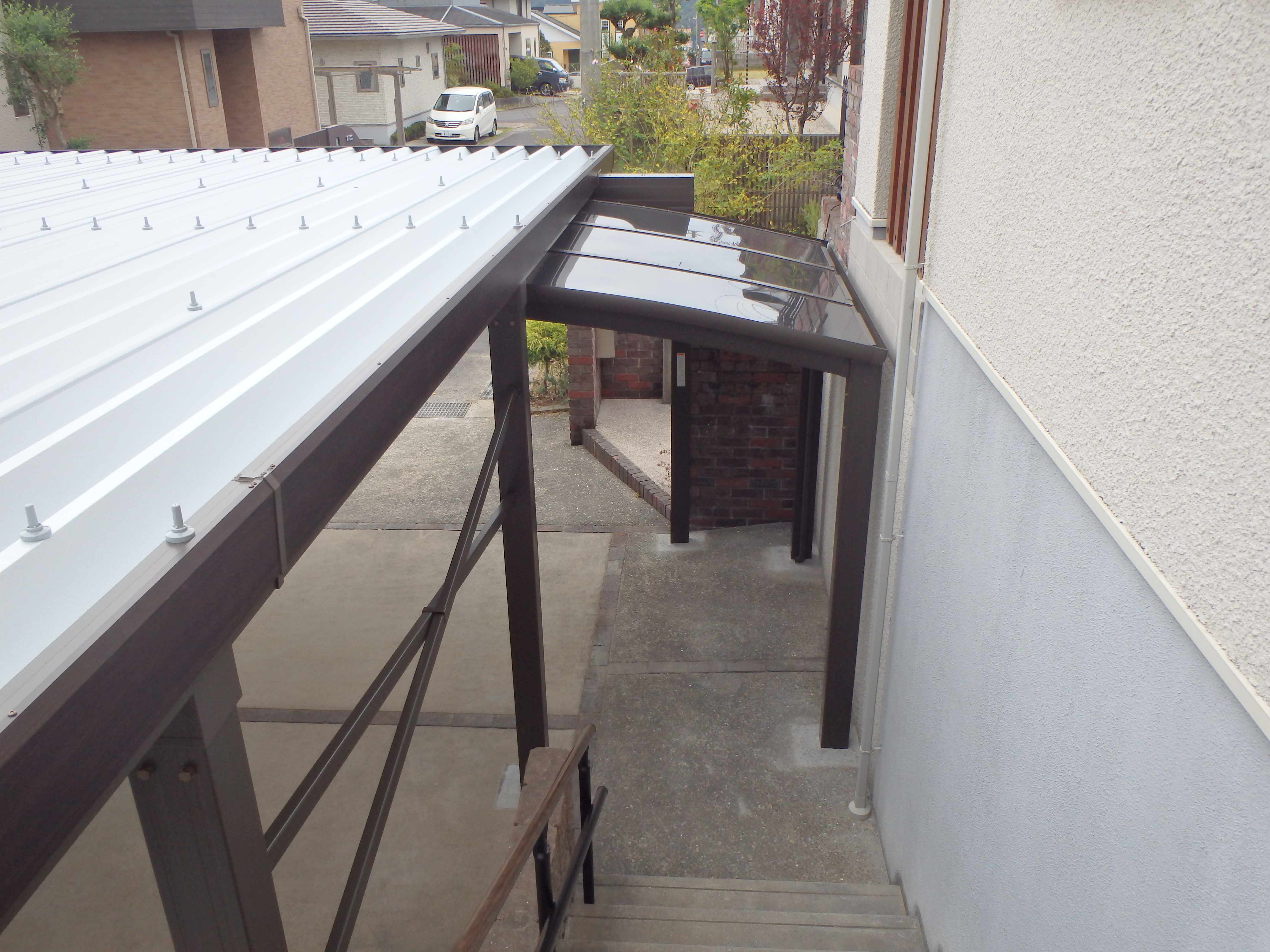 カーポートの施工例: 133長崎市 広いカーポートで車庫ゆったりラクラク駐車。