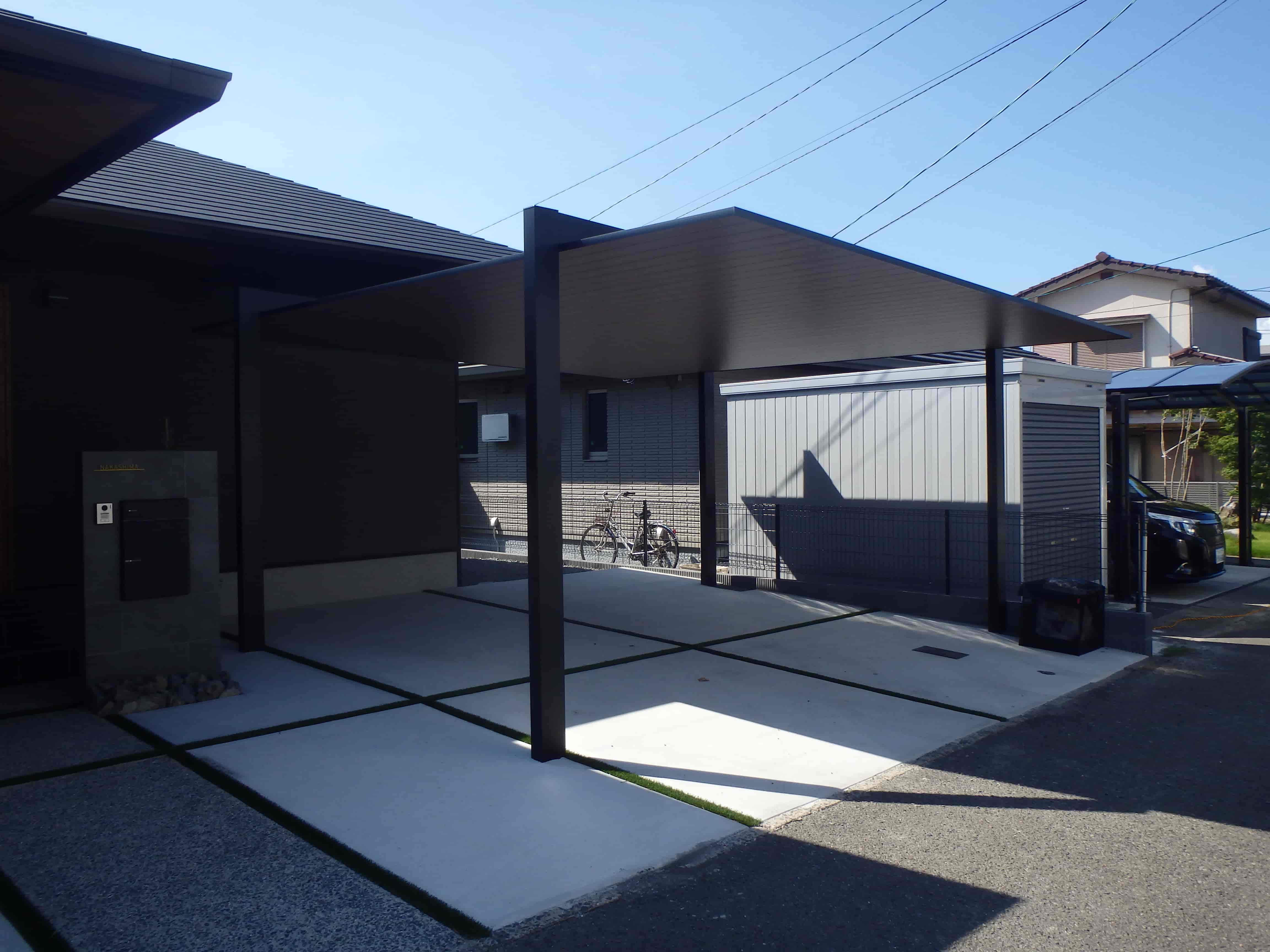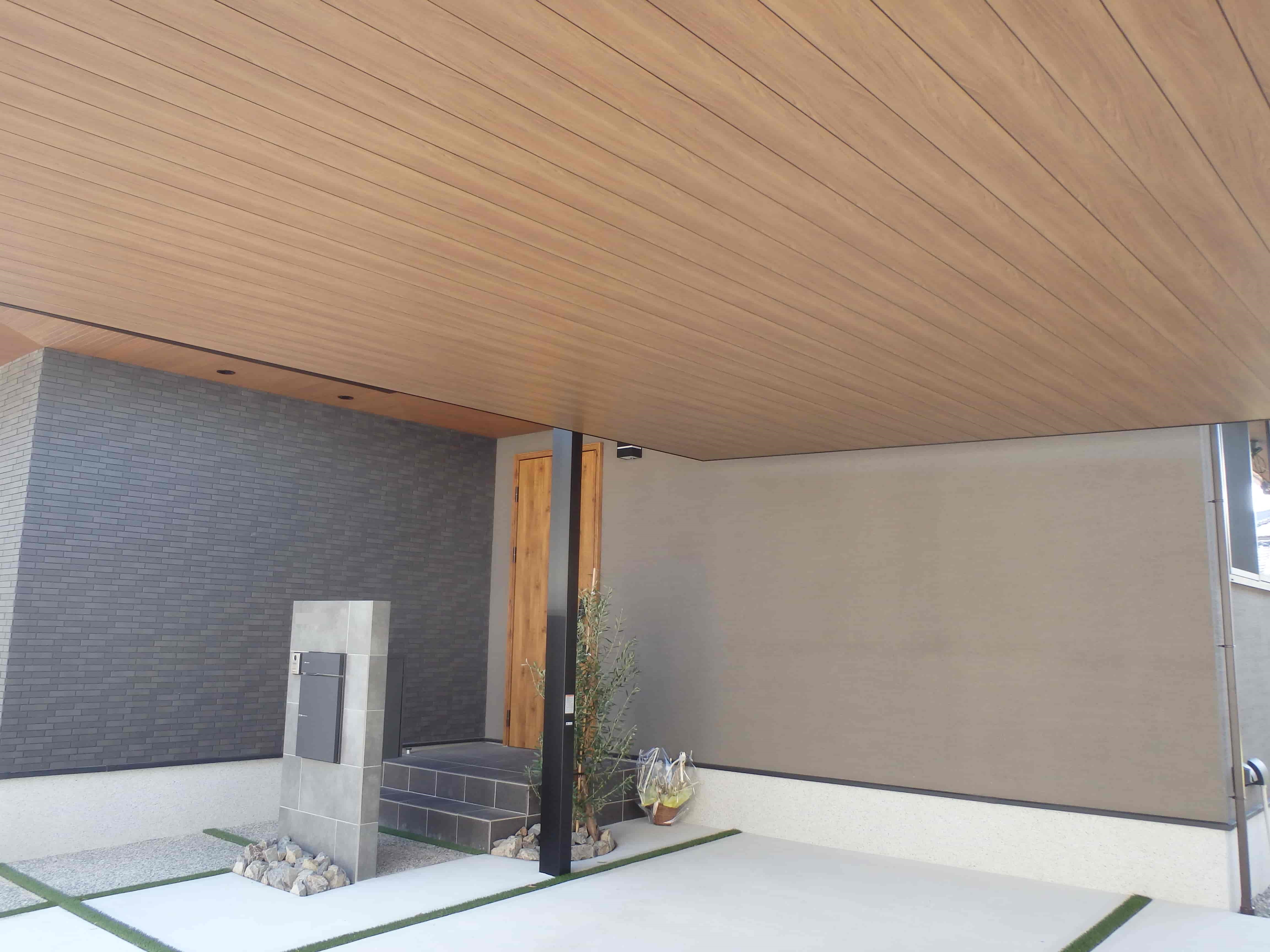 カーポートの施工例: 269 天井がこだわりの綺麗な木目調です。空間が柔らかい感じに。
